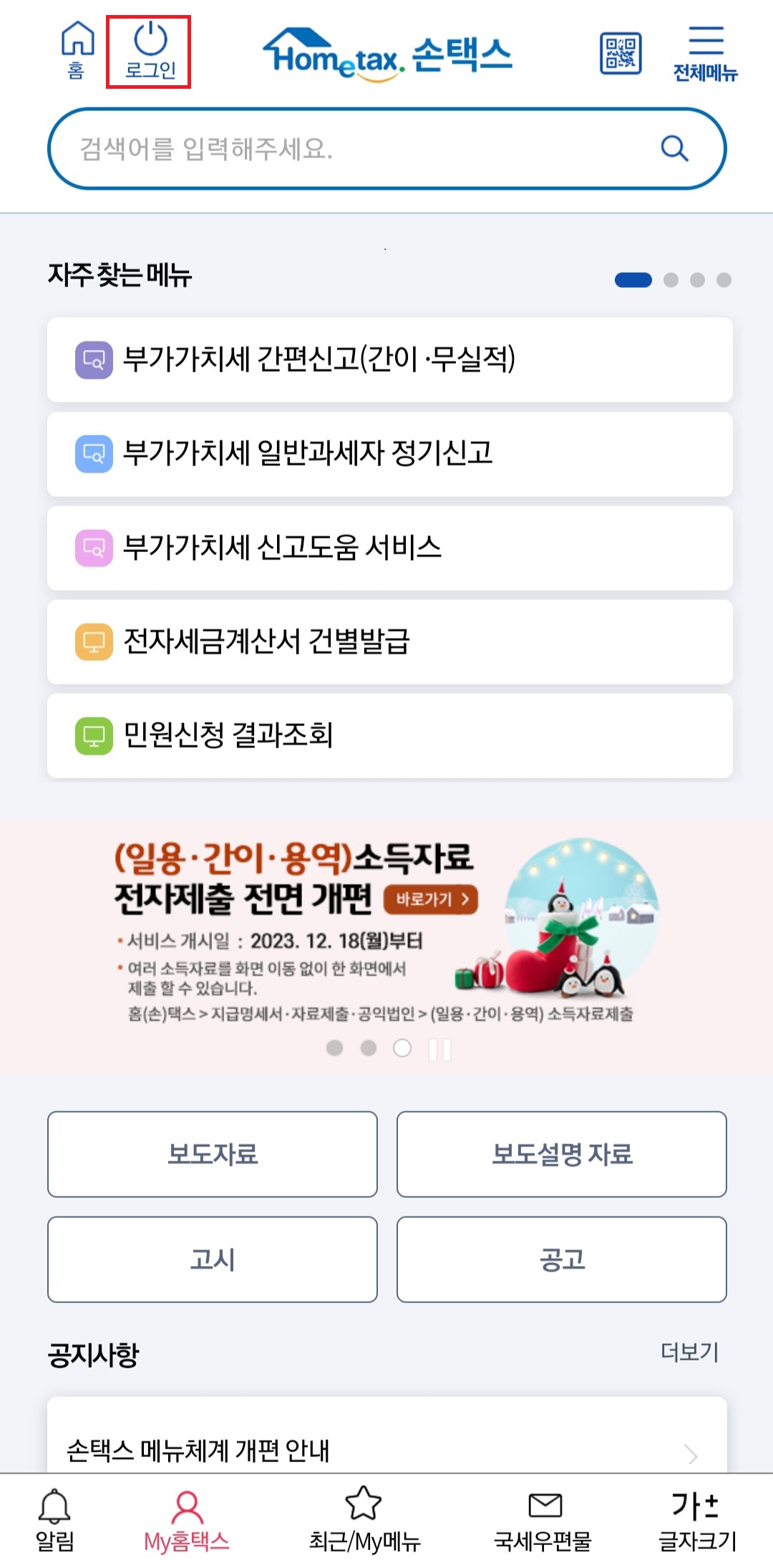 3. 손택스 메인화면에서 로그인을 클릭해 줍니다.
