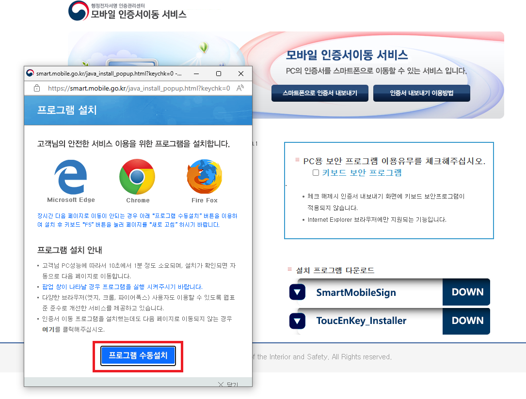 5. 이동 서비스를 위한 프로그램을 설치해 줍니다.