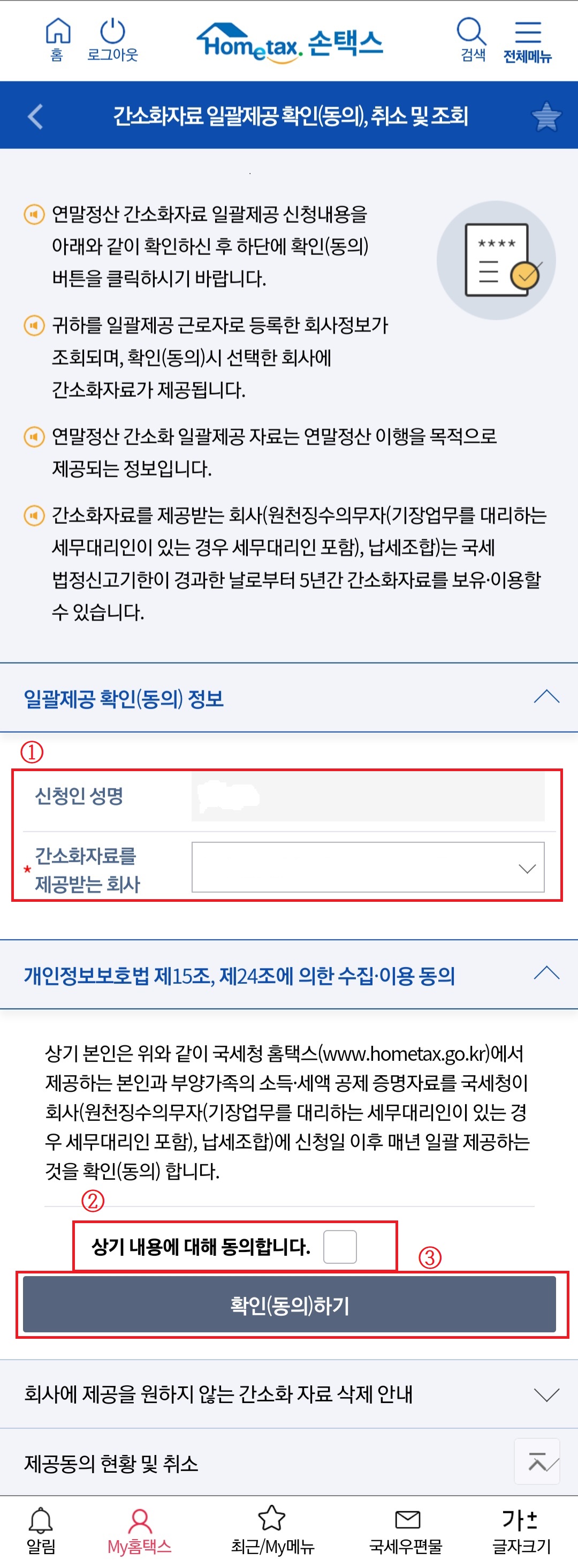 8. 순서대로 일괄제공 동의를 클릭해 줍니다.