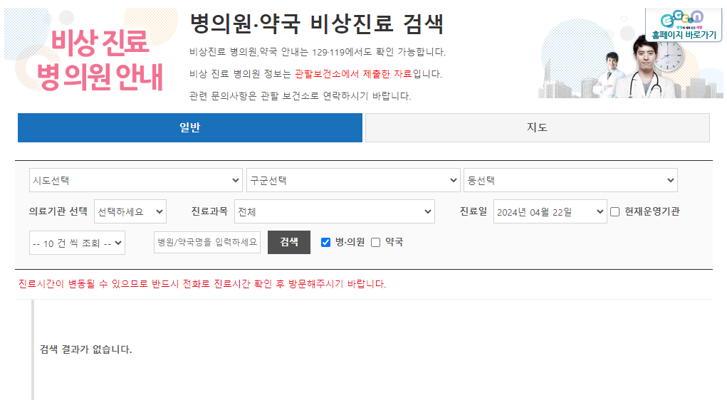 병의원·약국 비상진료 검색-일반 | E-GEN통합홈페이지